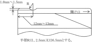 | | 角柱形 | パインアップルの厚肉の輪切り(厚さが三十八ミリメートル以下のものに限る。)を角柱状に切断したものであって、縦及び横の長さがおおむね十二ミリメートル以上のものをいう。 |