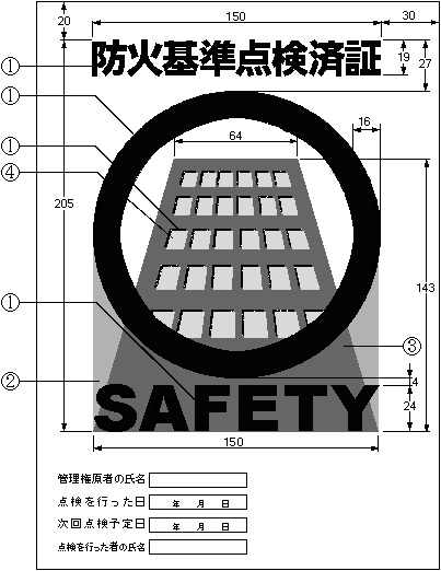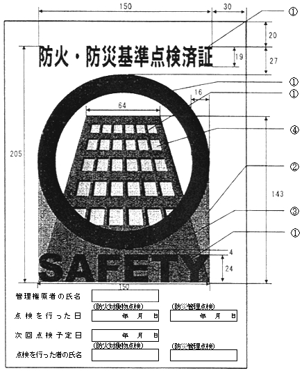 (ホ)二酸化炭素を貯蔵する貯蔵容器を設ける場所及び防護区画の出入口等の見やすい箇所に、次の(1)及び(2)に定める事項並びに日本産業規格A八三一二(二〇二一)の図A.1(一辺の長さが〇・三メートル以上のものに限る。)を表示した標識を設けること。
