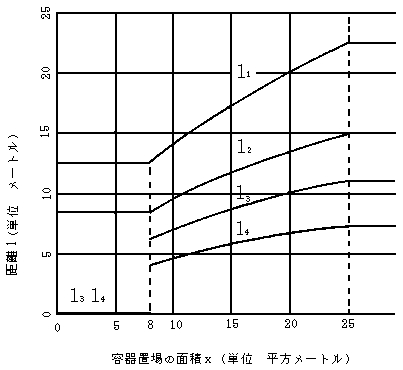 | 五十二 第七条の三第二項第三十三号ロの容器置場の敷地境界までの距離等 | 五十二 容器置場の外面から敷地境界に対する距離を巻尺その他の測定器具を用いた測定により検査する。ただし、当該測定において規定の距離を満たしていることが目視等により容易に判定できる場合に限り、目視等による検査に代えることができる。なお、規定の距離が確保できない場合であつて、距離の確保と同等以上の措置を講じているものについては、当該措置の状況を目視等又は図面により検査する。 |