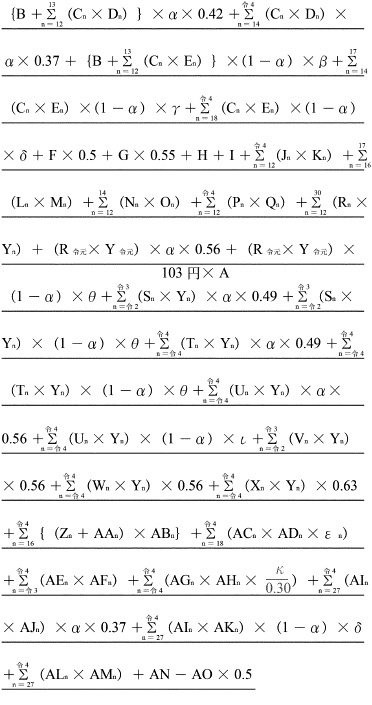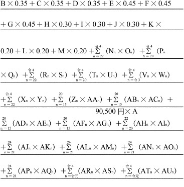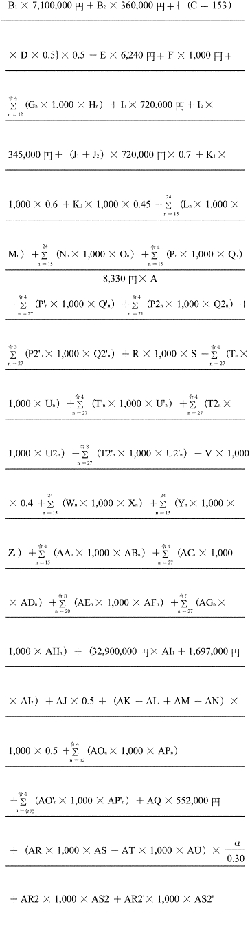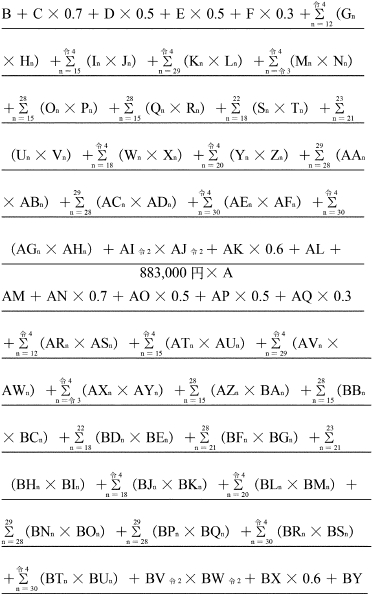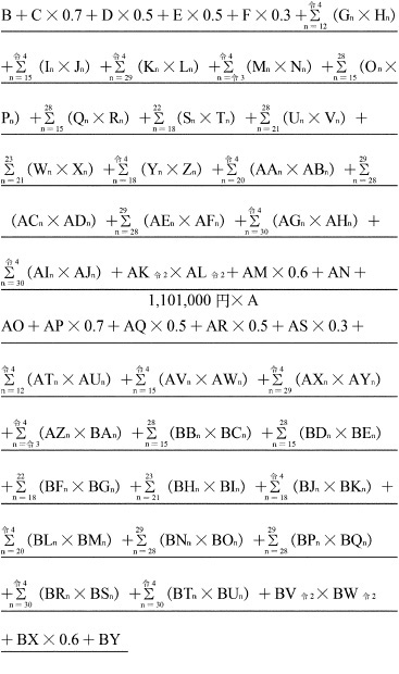| | | (注) 特別区、仙台市、千葉市、横浜市、川崎市、名古屋市、京都市、大阪市、神戸市及び福岡市にあつては、Bの率にそれぞれ0.038を、札幌市、静岡市、浜松市、岡山市、広島市及び北九州市にあつては、Bの率にそれぞれ0.019を加算する。 |